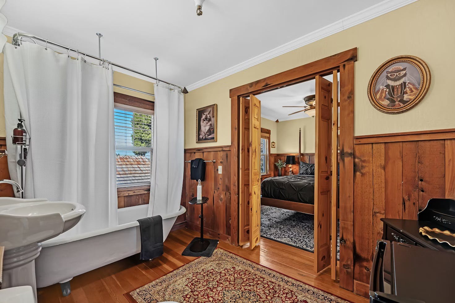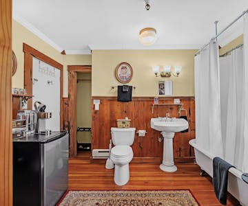 You won’t want to leave this charming, one-of-a-kind boutique hotel in the quaint "Apple Hill" town of Camino. Enjoy a restful night in this Poetic prime suite with a clawfoot tub, mini fridge, Keurig, Heat/AC, and TV. The common spaces include Hotel Kitchen use, a pool table, foosball & fireplace. Relax in your own room or meet other guests for a game of pool. We are under new ownership and making changes. We hope you stay with us & create memories at this charming boutique hotel built in 1888!